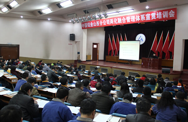 近(jin)日,為更好(hao)地(di)開(kai)展兩化(hua)融(rong)合(he)(he)管(guan)(guan)理體系內審工(gong)作(zuo),中(zhong)國鋁業山(shan)西(xi)(xi)分(fen)(fen)公(gong)(gong)司在(zai)分(fen)(fen)公(gong)(gong)司會(hui)議廳召(zhao)開(kai)兩化(hua)融(rong)合(he)(he)管(guan)(guan)理體系宣貫(guan)培訓(xun)(xun)會(hui),山(shan)西(xi)(xi)分(fen)(fen)公(gong)(gong)司副總經理郭(guo)慶山(shan),各(ge)單位兩化(hua)融(rong)合(he)(he)工(gong)作(zuo)負責人(ren)、體系管(guan)(guan)理員等180多(duo)人(ren)參(can)加了培訓(xun)(xun)會(hui)。