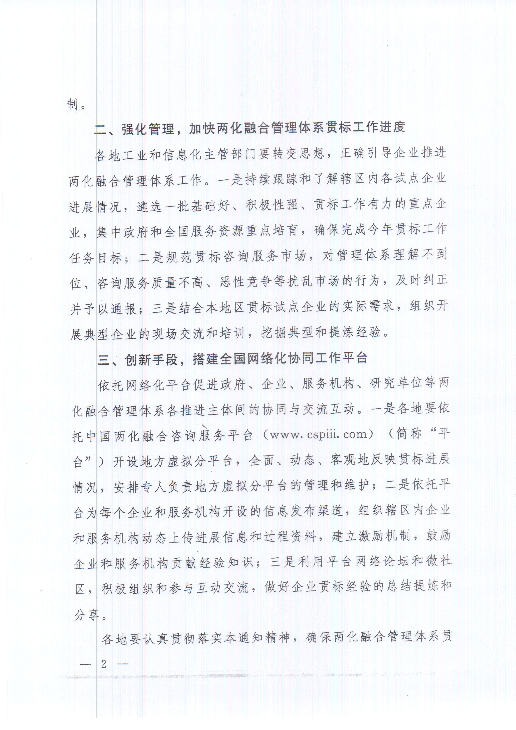 工業和信息化部辦公廳關于進一步做好兩化融合管理體系貫標工作的通知