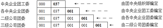 【團組織機構代碼】錄入該團組織被賦予的代碼,為層次型結構編碼,每3位為一層,每一層表示一級團組織,每個團組織編碼由上一級團組織編定。如團中央組織部為中央企業團工委等編定代碼,中央企業團工委為在京中央企業團委編定代碼,在京中央企業團委為下屬二級公司團委編定代碼等。